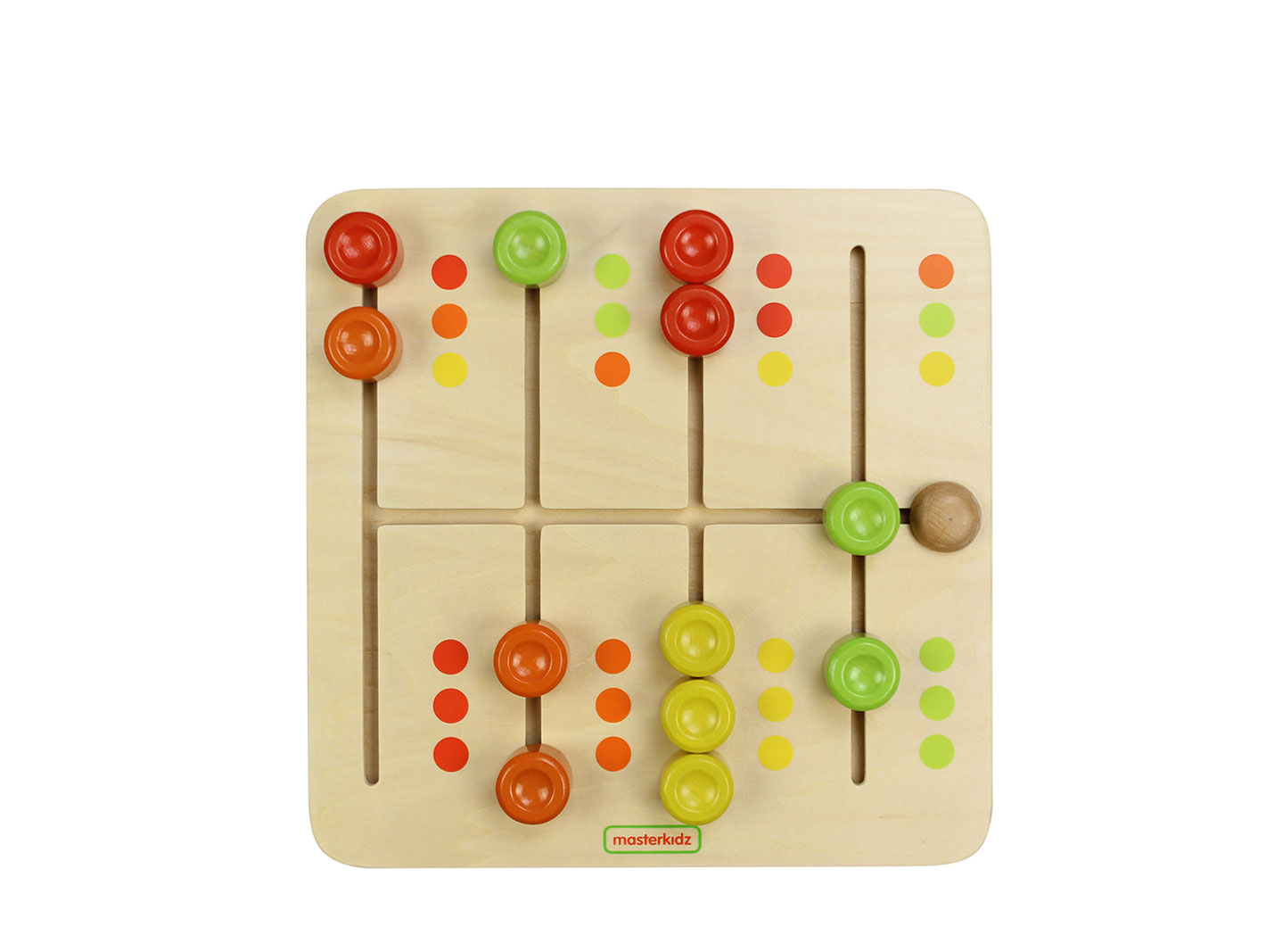顏色配對滑軌迷宮可以訓練腦部開發潛能,可以讓孩子認識顏色、數量並可以透過指定的顏色或及數量讓孩子移動到該處,達到學習的效果。