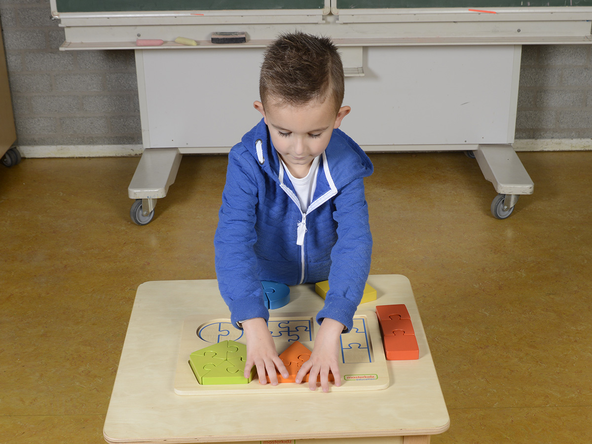 形狀拼接學習板是根據幾 何圖形所設計,透過拼圖拼接 形式來認識幾何圖形。
