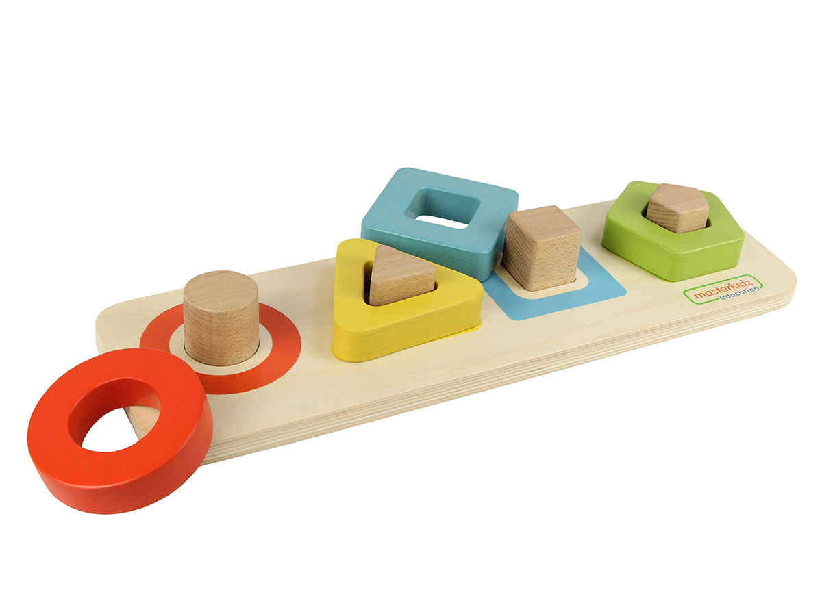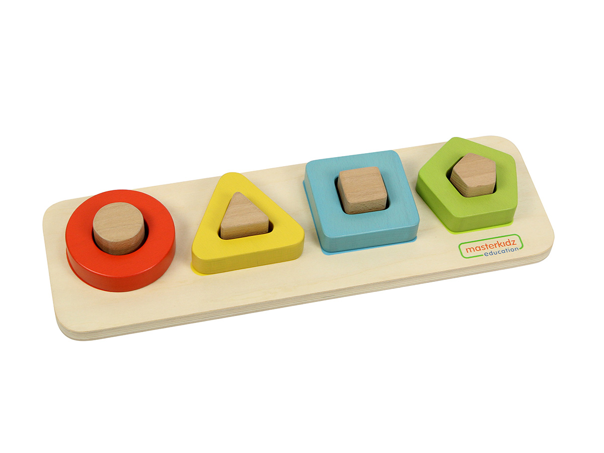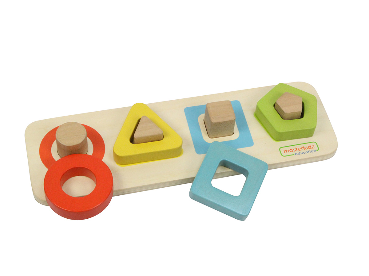 幾何形狀學習板能幫助 幼兒從遊戲當中認識顏色、 形狀,訓練幼兒的手部肌肉 發展。