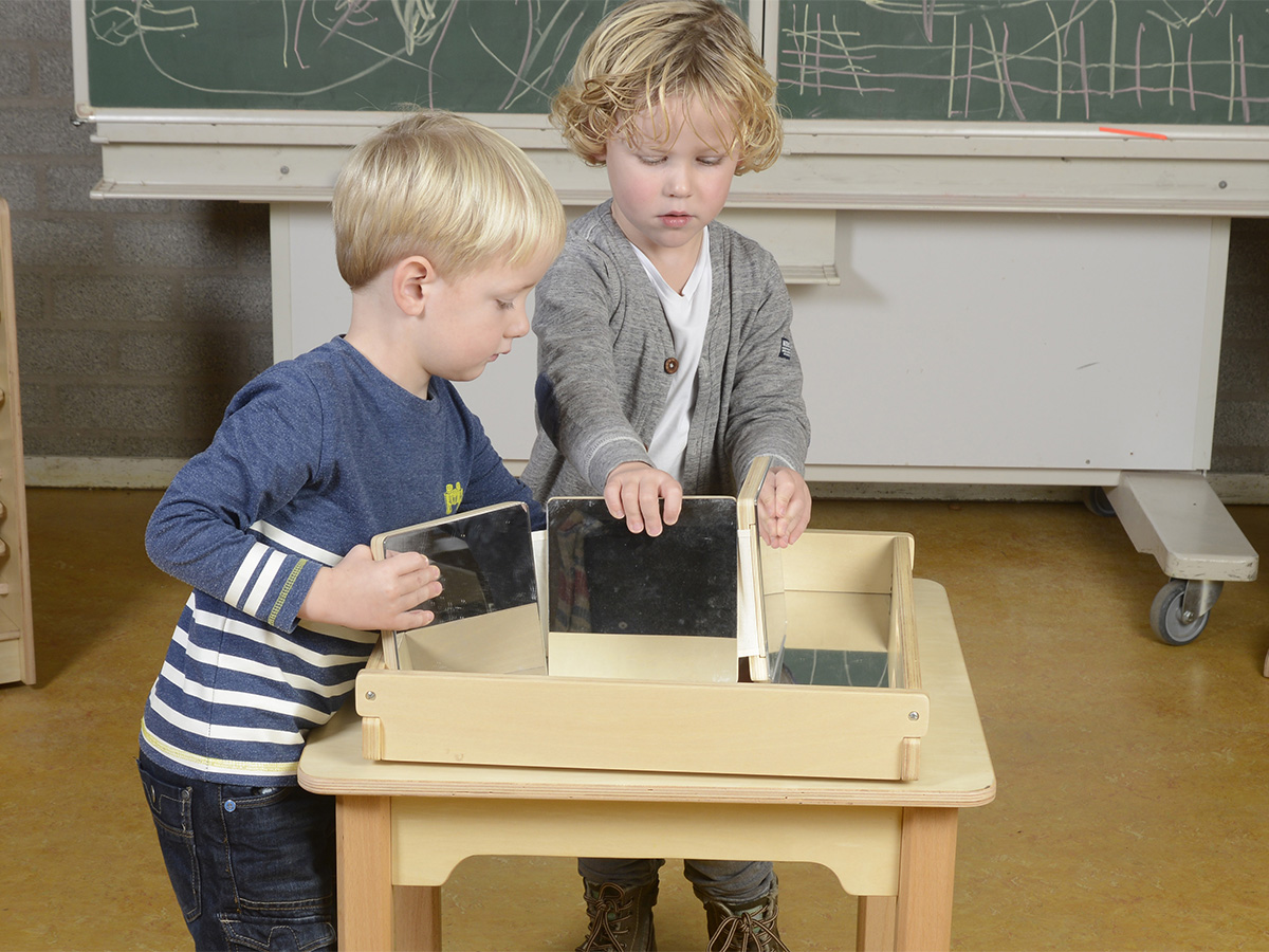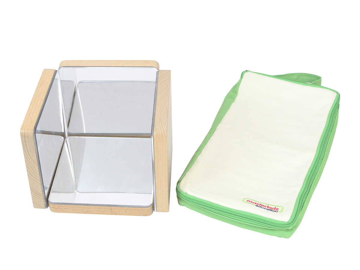 學習鏡面四件套由4 塊鏡面組成,可以 用來創造不同鏡面組合,達到不同的教學目 的,透過不同形狀、顏色、紋理的物件放到 鏡面後產生的倒影,培養幼兒創意思維和空 間思維。附教具專屬收納袋。可根據教學需 求,單獨使用或另購積木套裝(ME04017) 彩色積木(ME04000) 共同使用。