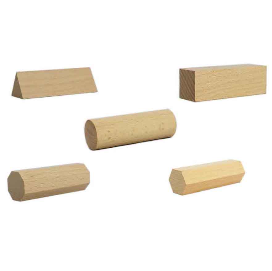 由12 種不同的原木積木組合而成, 其中包括四方體、柱體、椎體、球體等不同 的立體造型。