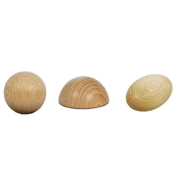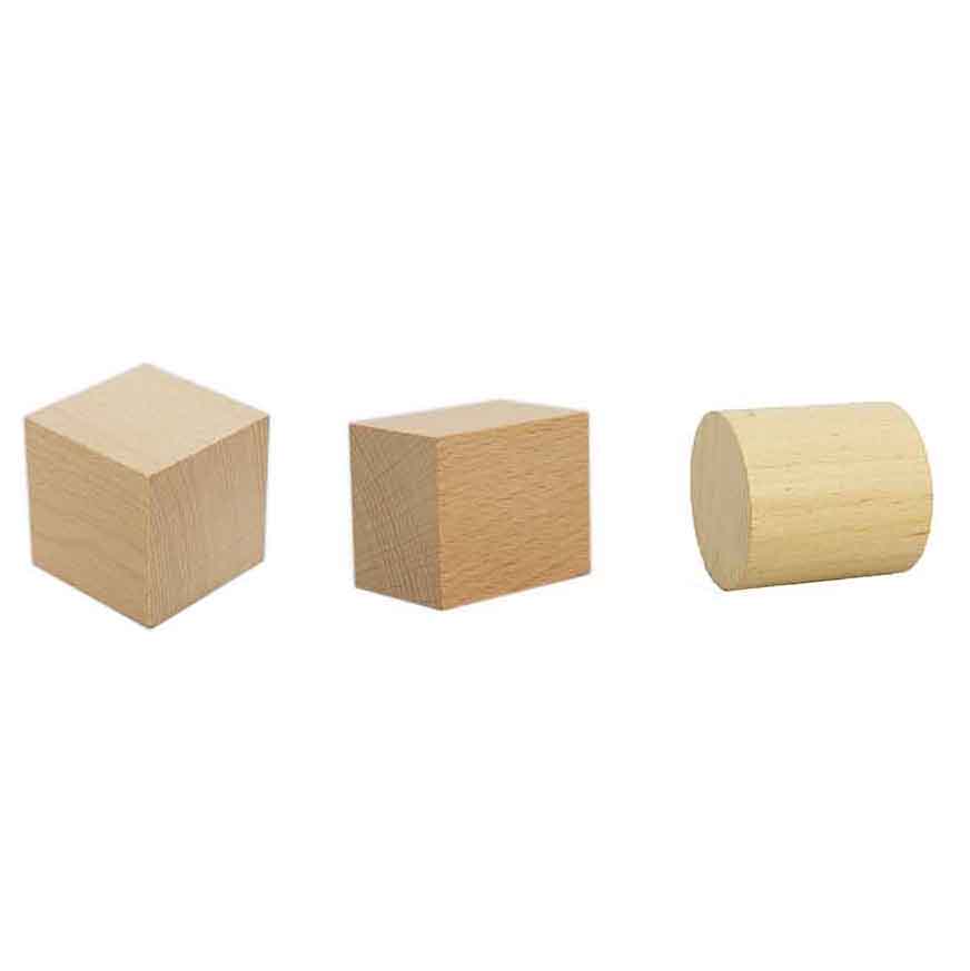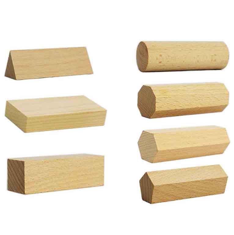 由20 種不同的原木積木組合而成, 其中包括四方體、柱體、椎體、球 體等不同的立體造型。