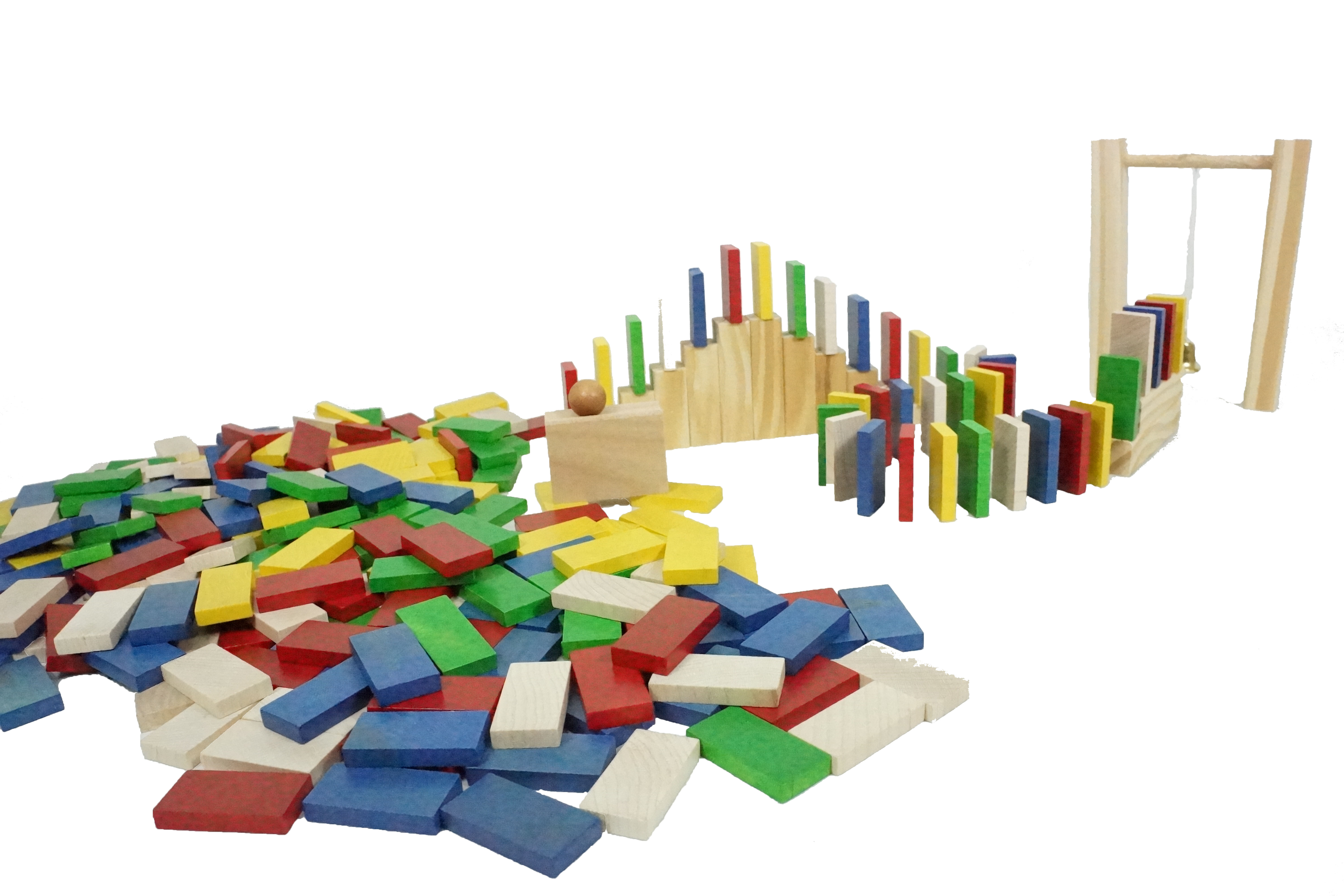 讓孩子運用木珠與滑槽及長方木條骨牌, 創造出多種排列組合相連性的骨牌圖形。