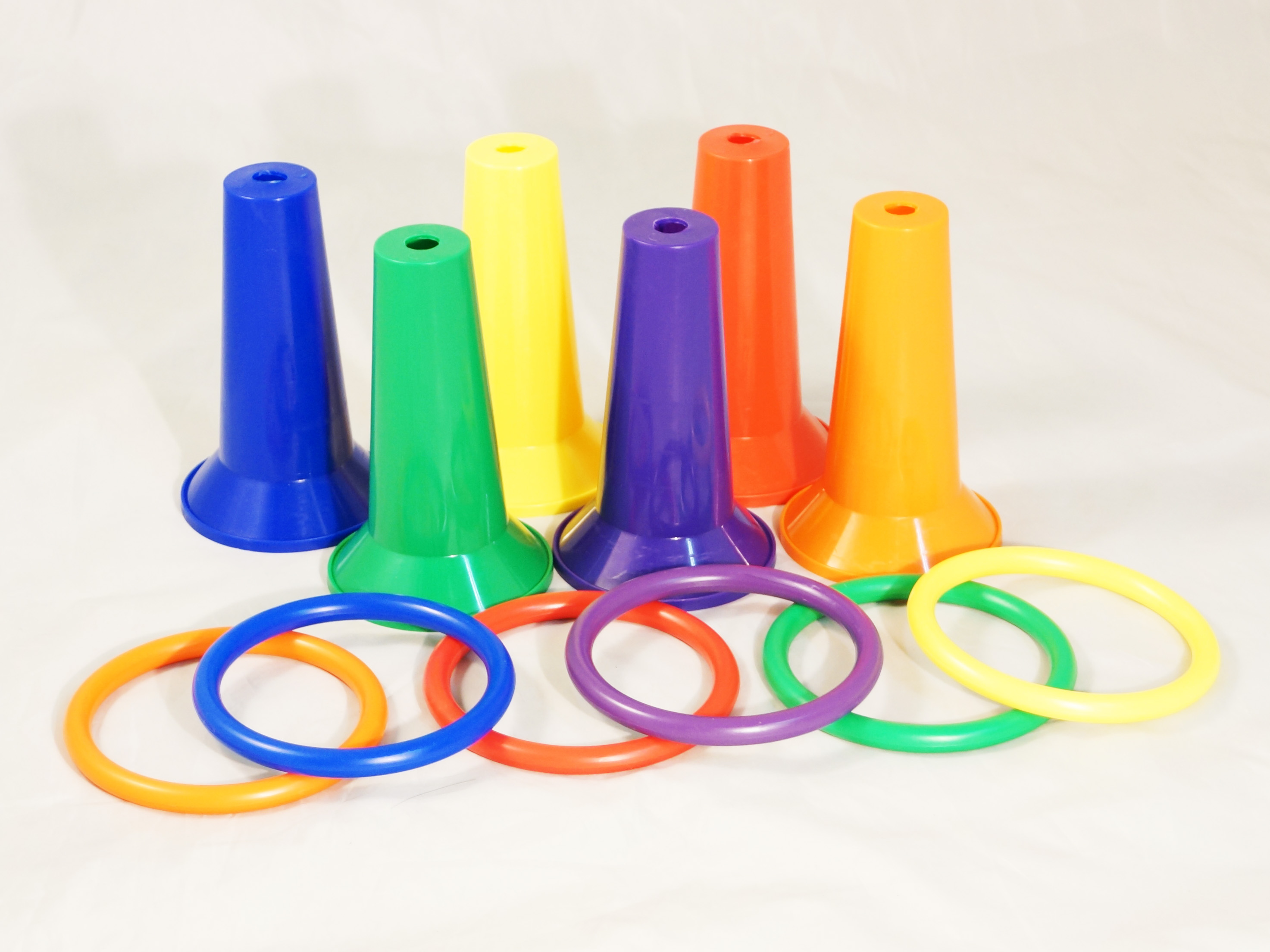 瞄準目標後,努力的將手中的圈圈拋出, 可以進行顏色配對, 也能隨機配搭,活動中持續不斷的考驗手 部動作的穩定與協調