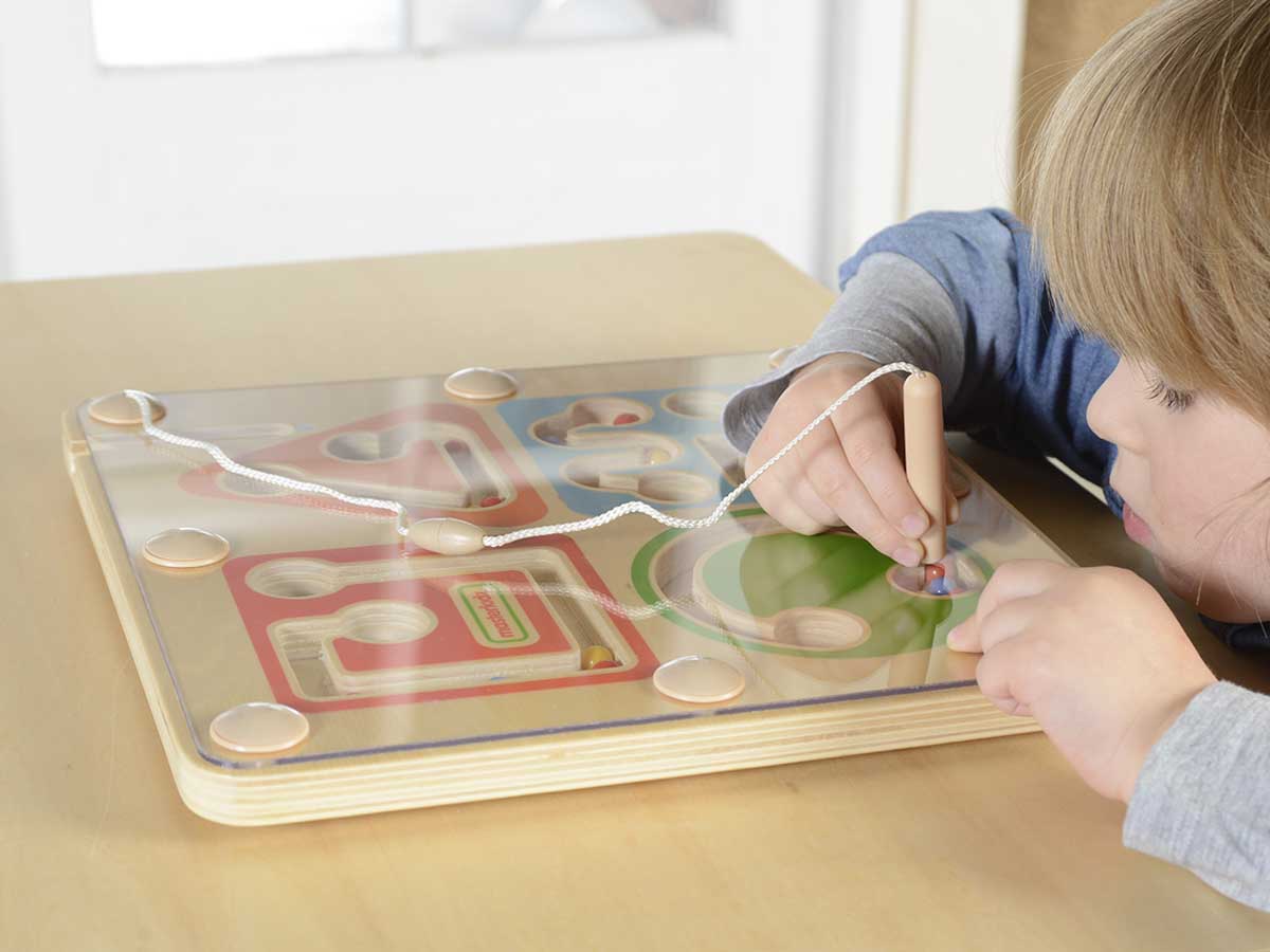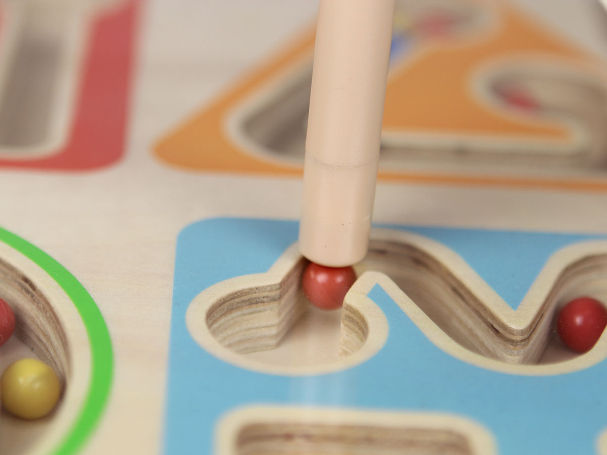 磁性滑珠迷宮透過磁吸的方式將小滾珠從A處移到B處,可以培養孩子耐力、專注力、觀察力以及手部靈活。