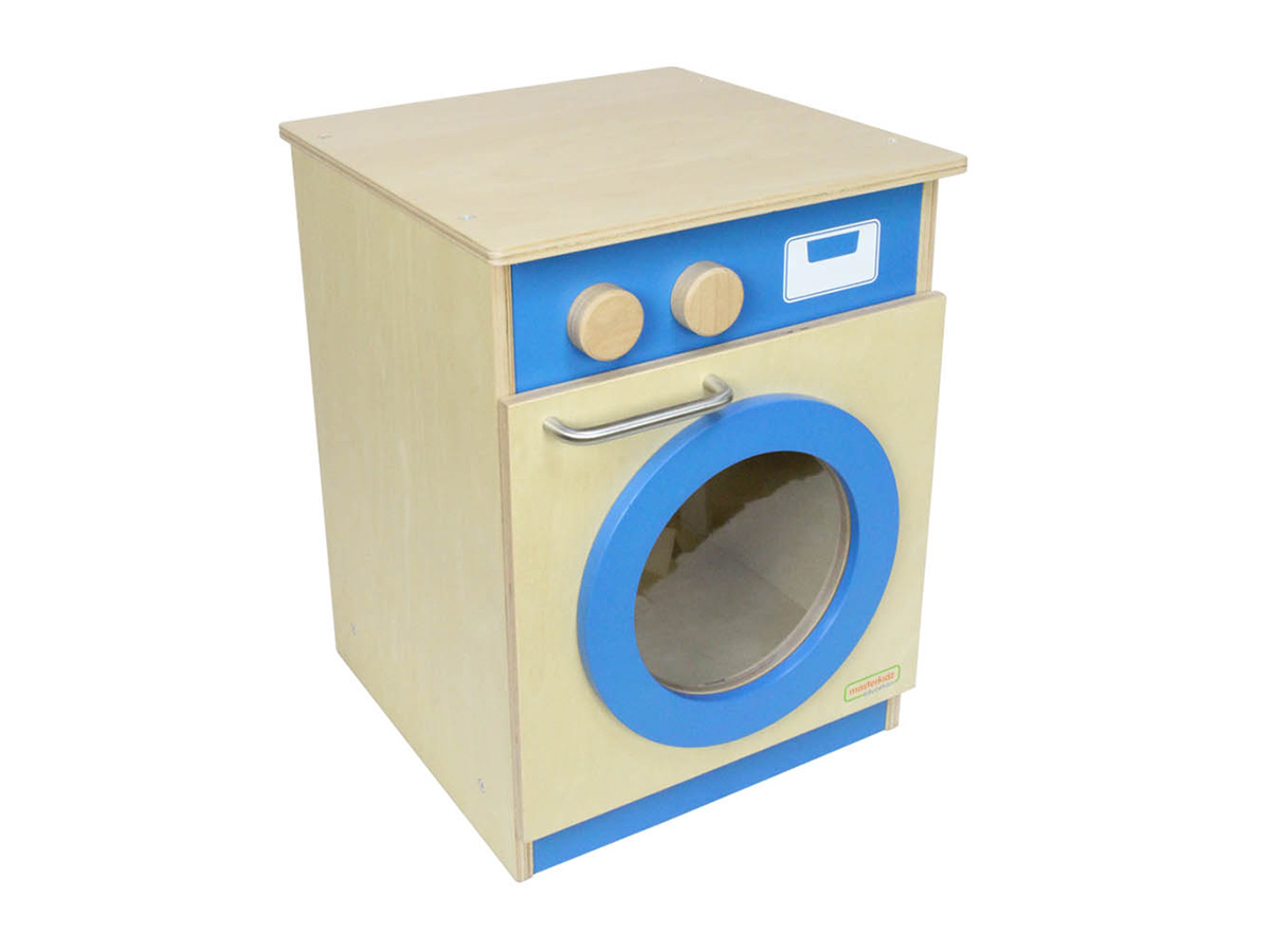 木製洗衣機由俄羅斯樺木合板製成,單邊可開啟的門及兩個控制旋鈕。