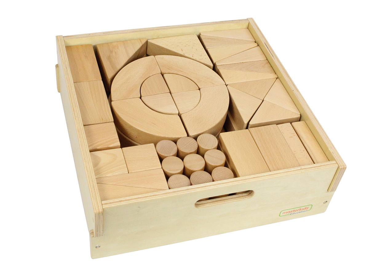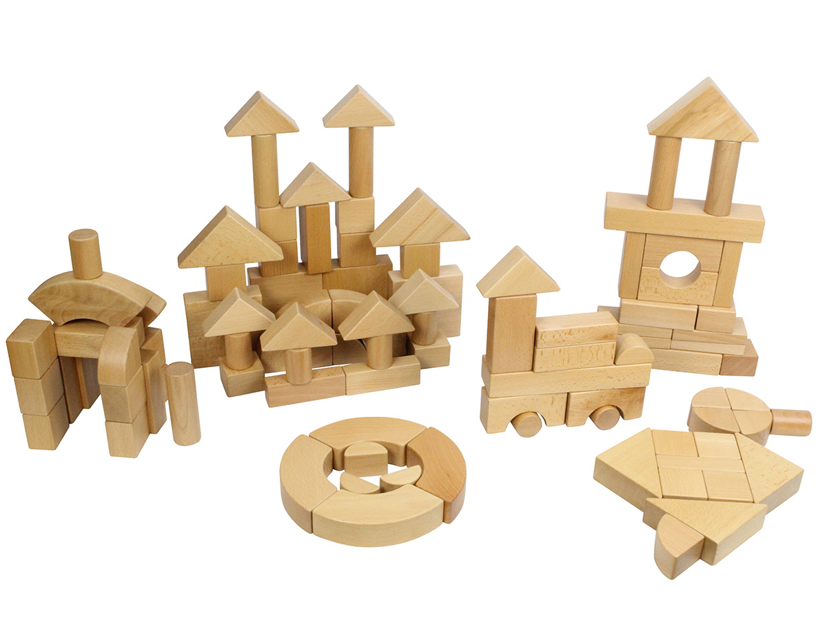 本產品由歐洲進口櫸木製造,包含 92 件不同形狀大小積木,共有正方形、 長方形、三角形、半圓和圓柱形,所有 邊角均經過圓角處理。積木能發展幼兒 對形狀認識,邏輯思考能力和探索能力 的發展,幼兒可以搭建屬於自己的城堡。 幼兒在建構圖型過程中,會對圖形的特 點,分割與組合產生直覺式的認識。
