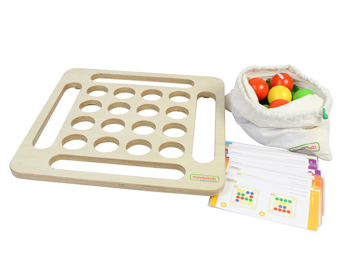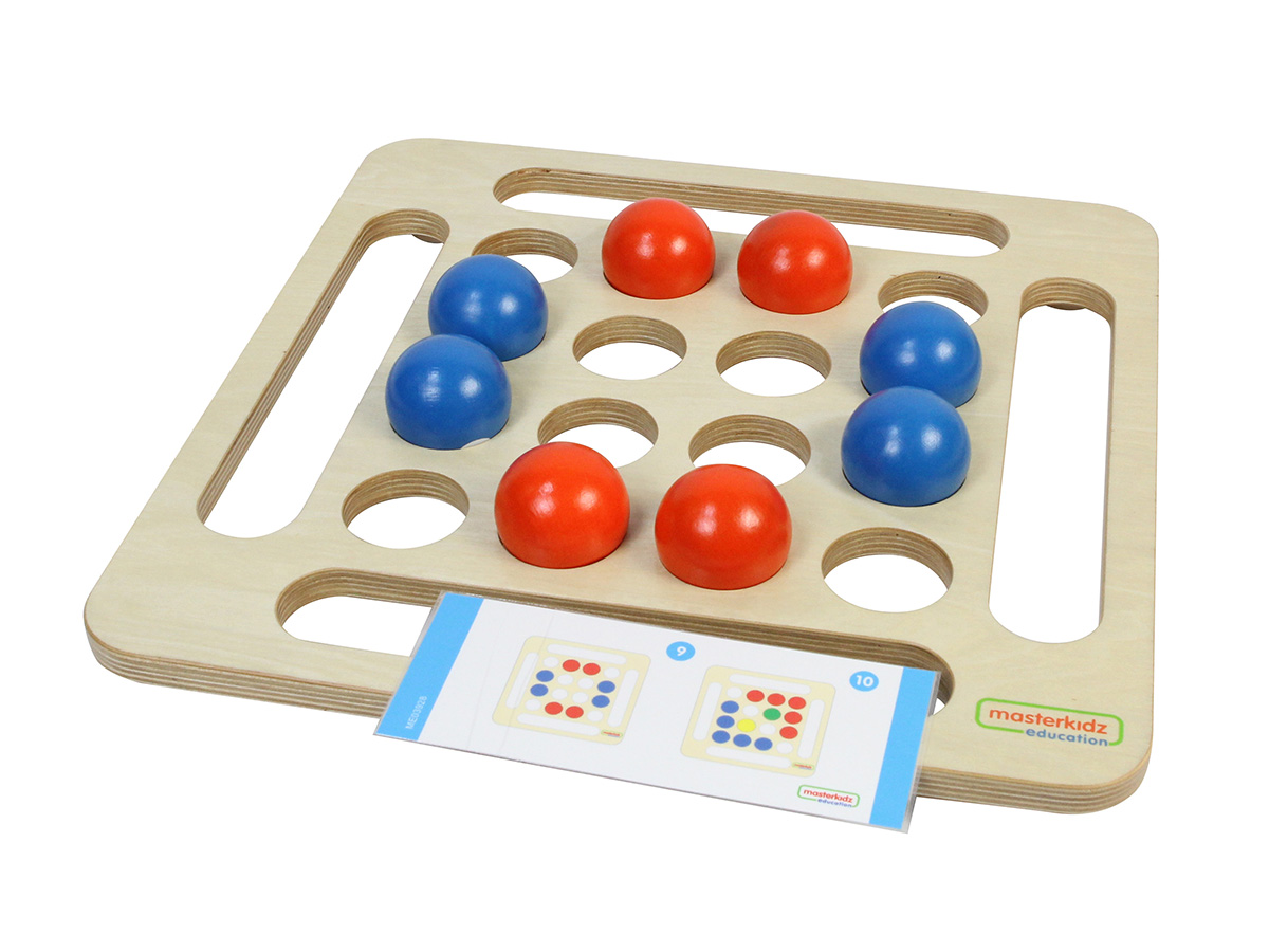 三度空間概念木球遊戲是套 多功能的空間概念教具,裡面包 含題卡,題卡設計針對不同年齡 層的孩童,區分遊戲的難易度, 有助於加深兒童對於空間概念、 邏輯思考能力