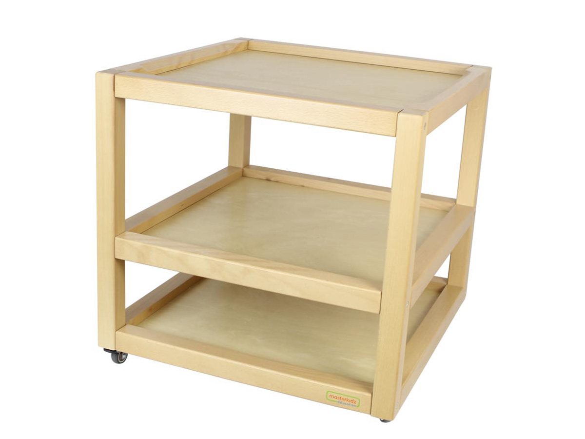 活動學習桌是由俄羅斯樺木合板及歐洲櫸木(FSC)所製成。桌面及層架式合置放MasterKidz教育系列的收納箱(ME03614、ME03584、ME03607)是一個兼具可移動、收納的桌子!