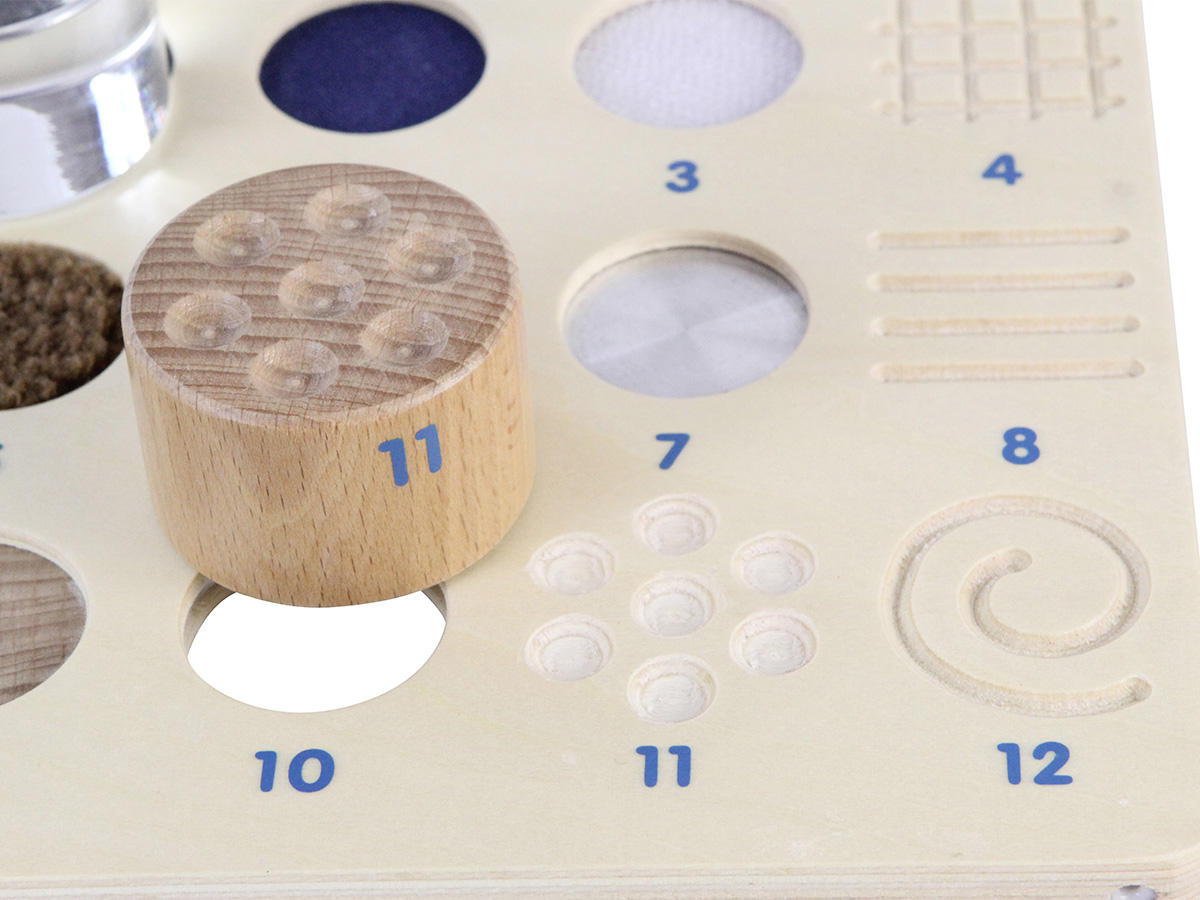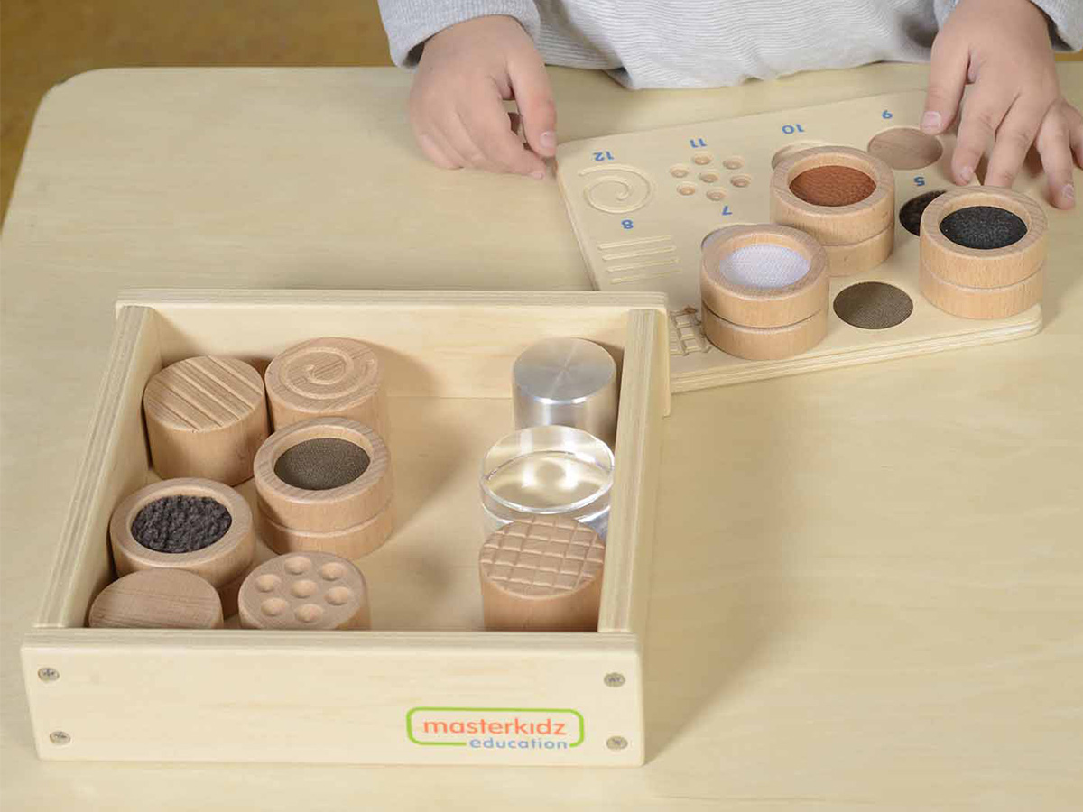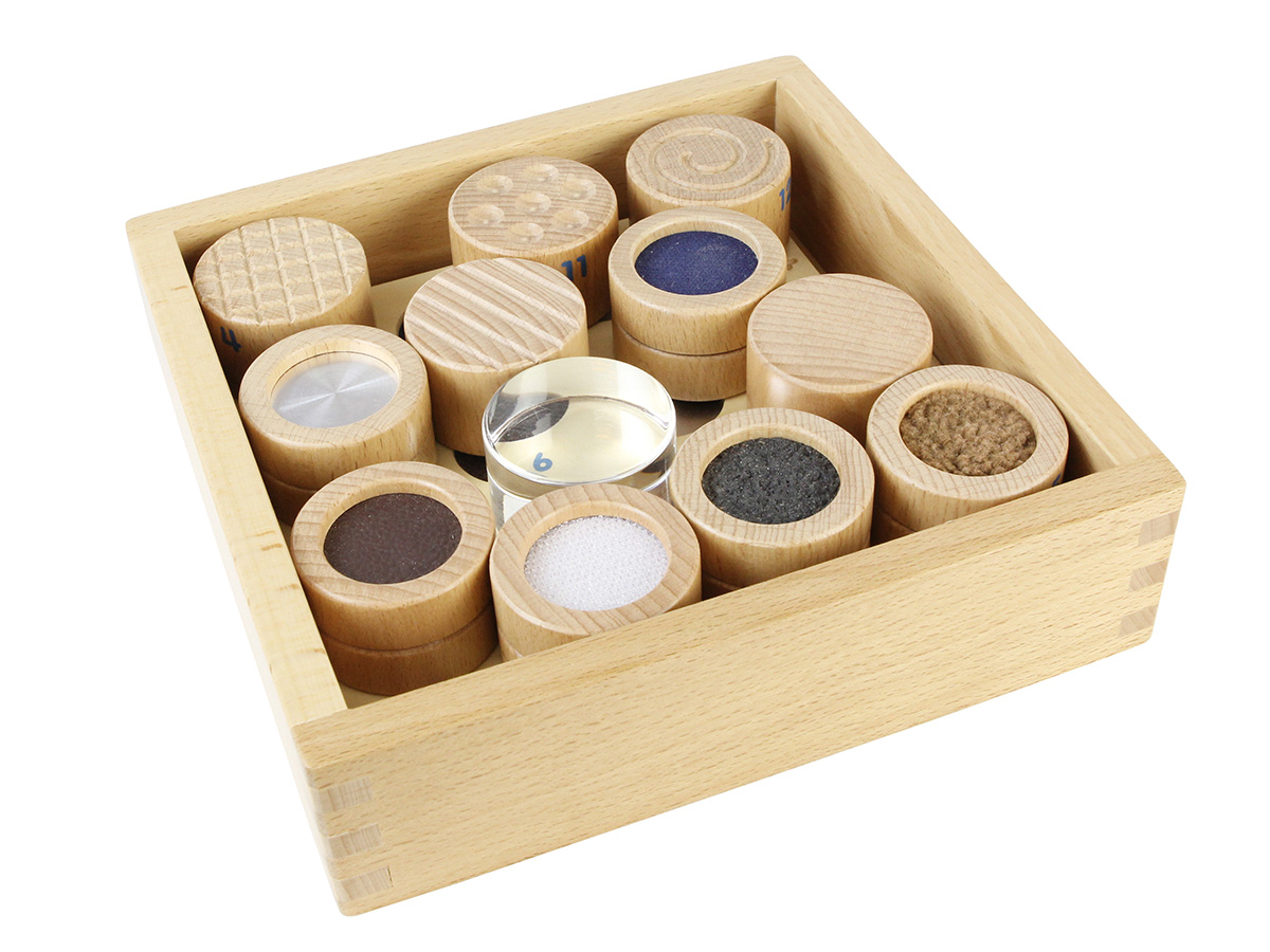 本產品由7 個不同材料積木和5 個不同表面 紋理積木組成,提供幼兒正確識別積木的材料與紋理,提高幼兒觸覺和辨識能力。
