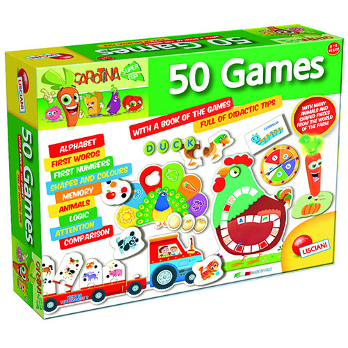 本款為寓教於樂的遊戲,讓孩子從玩樂中激 盪腦力與培養智能,共達50 種遊戲,,多種拼 圖、動物造型卡,透過簡易英文找出圖像、字母 旋轉盤、學習色彩等各種遊戲等你們來玩,內附 中文說明書,對照玩,天天玩,CP 值爆炸的一 款遊戲,適合自用也可送人!